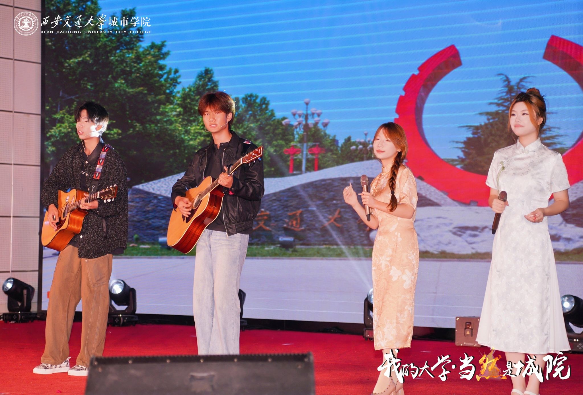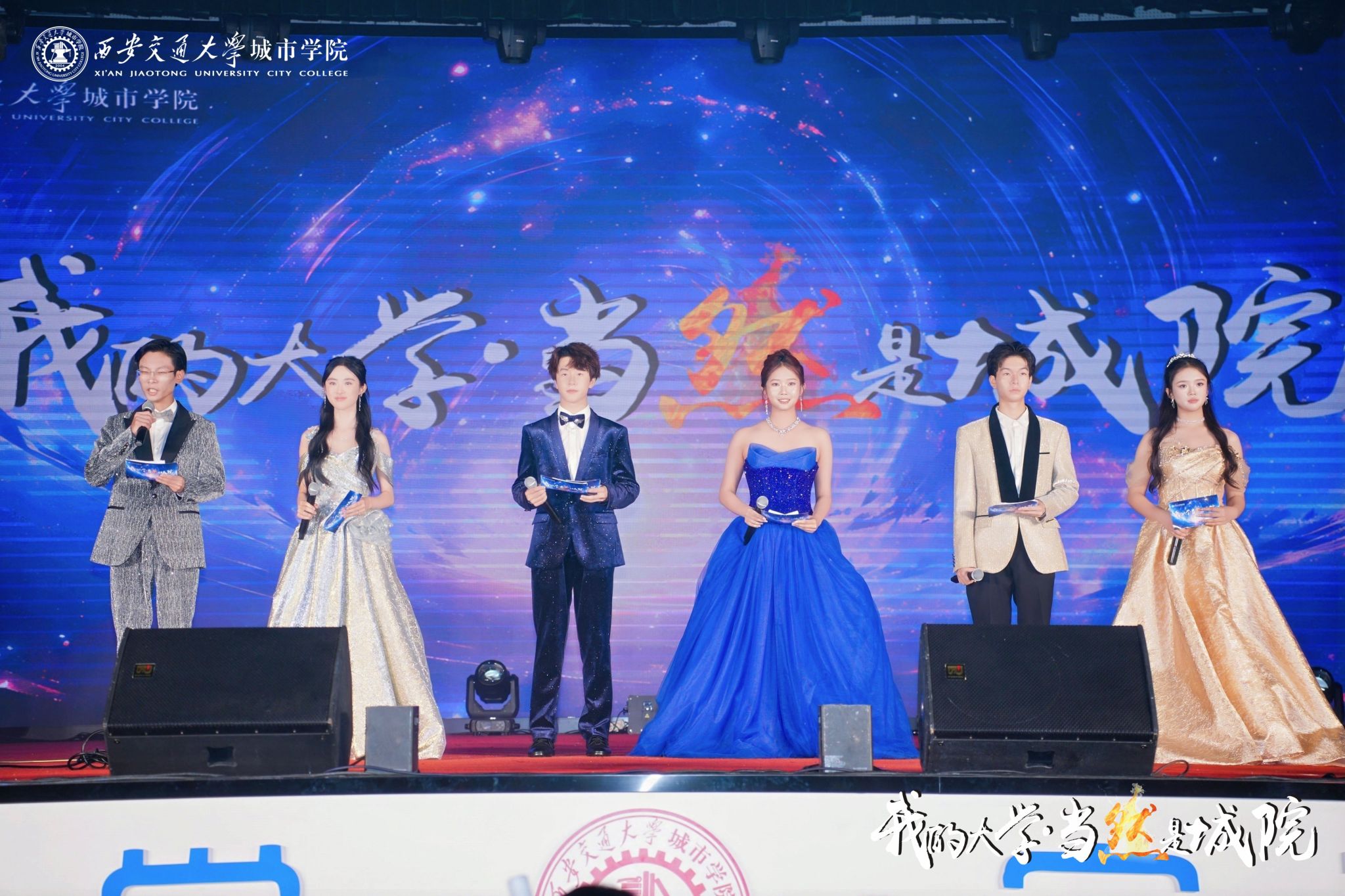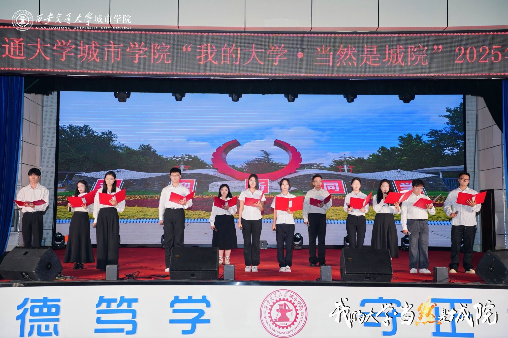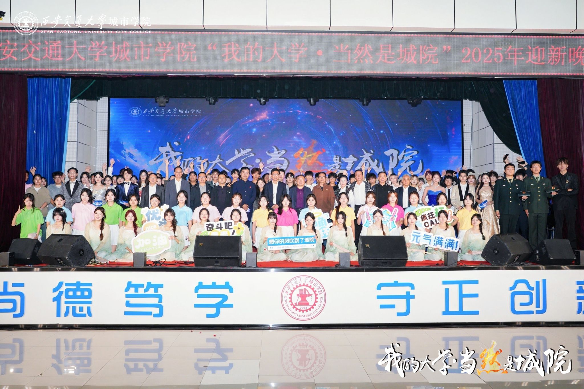 9月28日晚,西安交通大学城市学院“我的大学·当然是城院”2025年迎新晚会在大学生活动中心举行。西安市关心下一代志愿者服务团杨国栋、经开区关心下一代志愿者、“五老”代表,全体校领导,各二级学院、部(处)负责人,各二级学院学生工作负责人,辅导员及2025级新生共同开启大学时光的温暖序章。